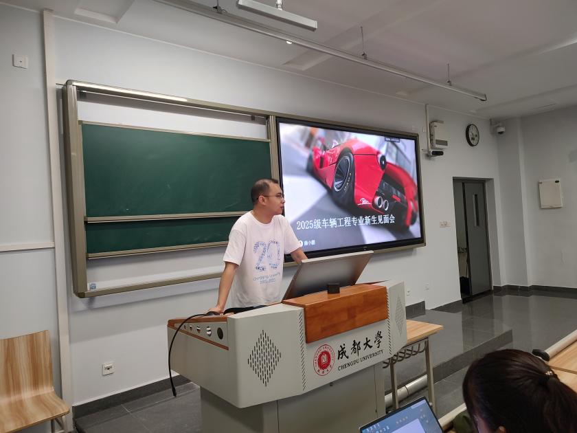 2025年9月16日上午,学院车辆工程专业2025级新生见面会在13223教室举行,车辆工程系副主任康小鹏主持会议,专业部分老师及全体新生参与。