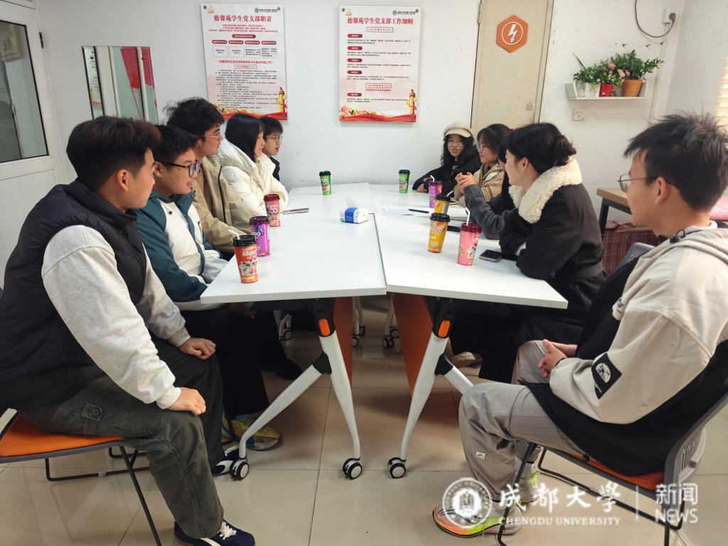 为促进家庭经济困难学生成长,帮助他们树立正确的目标,2025年12月3日下午,无码做爱“菁蓉苑”学生党支部、“晓闻”公寓辅导员工作室,在学生宿舍三栋德馨苑党员活动室成功举办了“大咖茶话会——心系学生暖人心,携手交流促成长活动”。学工办吴道文老师、学院学生会主席周凤敏同学作为嘉宾应邀参加。