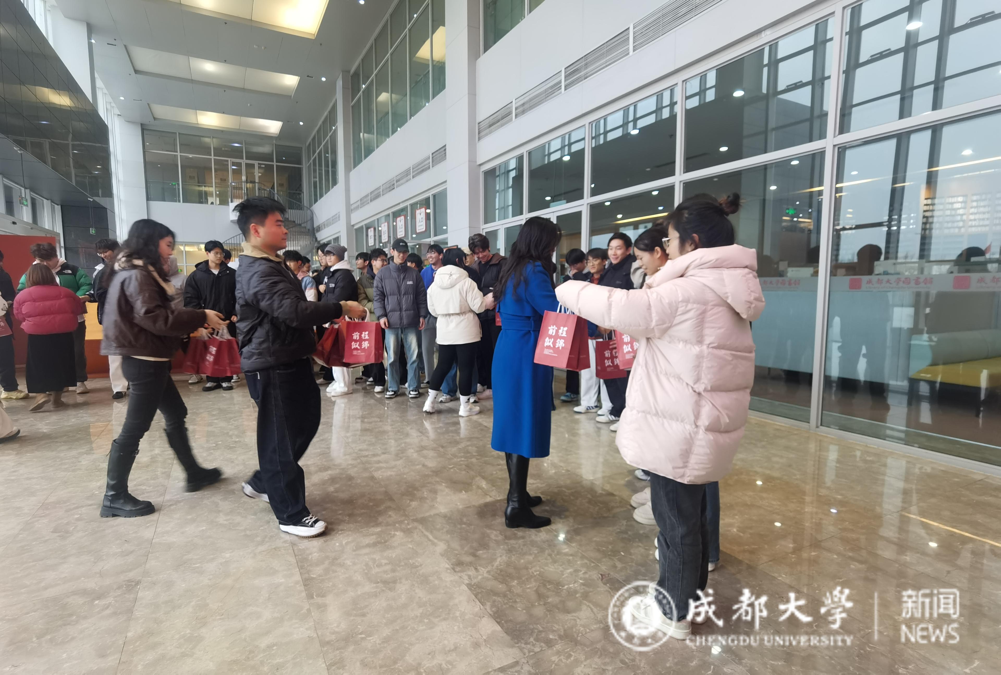 慰问现场,老师们将精心准备的“考研加油包”逐一发放到同学们手中。礼包内不仅有美好寓意的考研挂饰、更有实用的书签、蒸汽眼罩和温馨提示的暖心卡片。同学们倍感振奋,大家表示:在紧张备考的关键时刻,收到来自学院的关怀,感觉特别安心和温暖,这也为自己坚持到底,全力以赴增加了动力。
