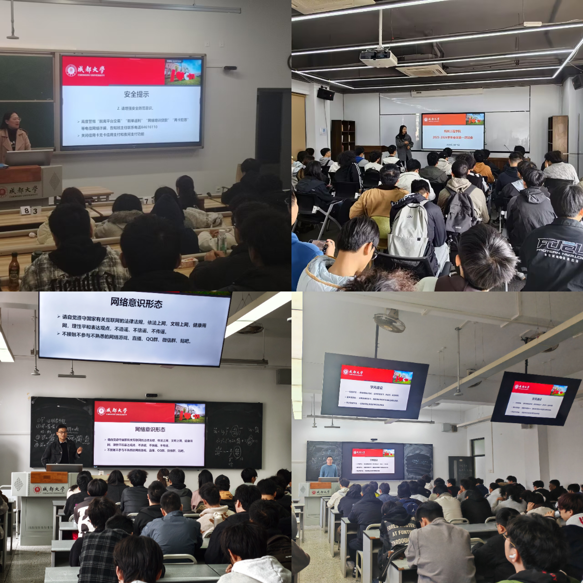 安全教育方面,聚焦防范电信网络诈骗、交通安全、实验室安全及宿舍用电安全等内容。重申规范用电、按时归寝、离校请假制度,提醒学生遵守交规、文明出行。反诈宣传突出针对性,详细讲解“脱离平台交易”“网络培训贷款”等高发电诈类型,强调“刷单返利”“两卡犯罪”的严重后果。网络意识形态教育环节,要求全体学生严格遵守互联网法律法规,坚持依法上网、文明上网、理性发声,自觉做到不造谣、不信谣、不传谣,远离陌生网络游戏、直播及网络社群,严守网络行为底线。